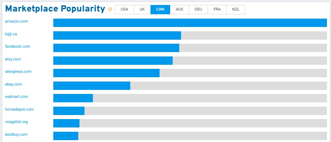 I was intrigued to see Kijiji was the second most popular marketplace in Canada. I feel this may be a “missed market” by some (including myself!).